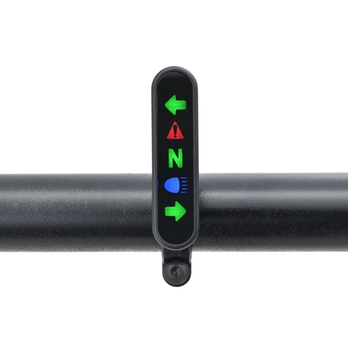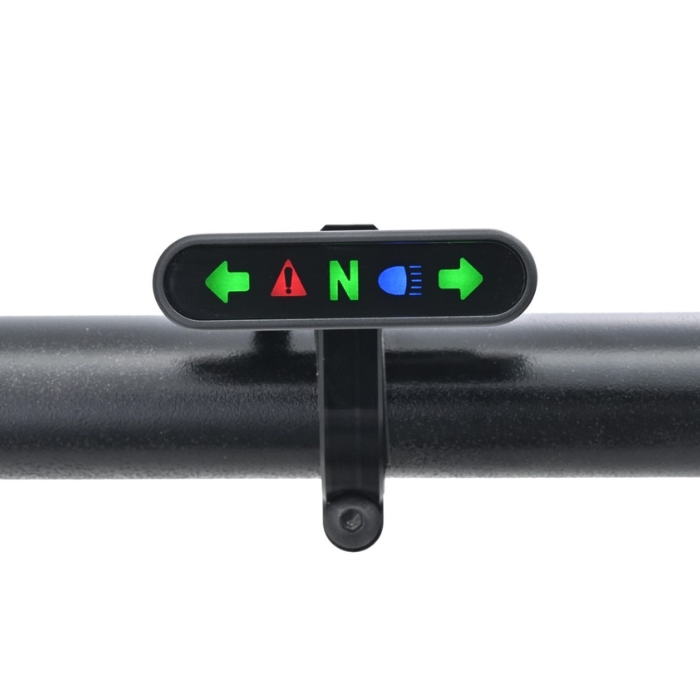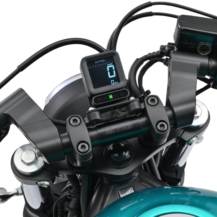 - 5 LED-beleuchtete Anzeigen für Neutral-, Öl-, Fernlicht- und Blinkeranzeige (3x Grün, 1x Rot u. 1x Blau)